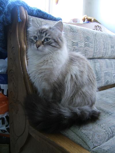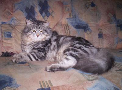 O plemeni:Krásky ze Sibiře. Mohutné spíše zavalité tělo, huňatý kožíšek, obrovské očí, láskyplný pohled. Jsou to nevtíraví stoikové, kteří mají rádi jak společnost lidí, tak dalších koček a nepohrdnou ani společností psa. Sibiřské kočky jsou velice snášenlivé, milé a mazlivé povahy zvláště, když jsou odchovány v bytě, kde mají úzký kontakt s člověkem od útlého věku. Je to kočka odolná a velmi přizpůsobivá, která s vámi bude žít jak v panelákovém bytě, tak i v domku se zahradou a ráda se v ní proběhne. Vzhledem k jejímu přírodnímu původu a snaze udržet tuto rasu v původní podobě (nepřešlechťovat) se těší sibiřská kočka dobrému zdraví.Pokud je zastihnete na polštáři v klidu odpočívat po dobrém jídle vypadají jako plyšová hračka, ale nejsou to žádní peciválové. Rádi se mazlí, hrají si a dovádějí, běh, rychlé přesouvání z místa na místo a vydatné šplhání je pro ně životní nutností. Přesto z nich neustále vyzařuje důstojnost, která je pro tyto obrovské kočky typická. Mají rádi přehled o všech událostech v domácnosti i když se nevrhají bezhlavě do akce, ale spíše z vyvýšeného místa pozorují, analyzují, hodnotí a teprve po zvážení všech pro a proti se vydávají prozkoumat vše taky z blízka, aby mohly páníčkovi podat podrobné hlášení o stavu věcí. Jsou upovídané, sice ne tolik jako siamky, ale přesto dost. Páníčkův návrat z práce vede k uvolnění stavidel jejich výřečnosti a ony s barvitou vášnivostí musí rychle vylíčit své celodenní zážitky. Ruští chovatelé tvrdí, že dokáží odebírat negativní energii. Na mnohých zahraničních www stránkách se vyskytují informace, že speciálně sibiřskou kočku si může pořídit i osoba alergická na kočky, protože se tento alergen u sibiřek nevyskytuje.