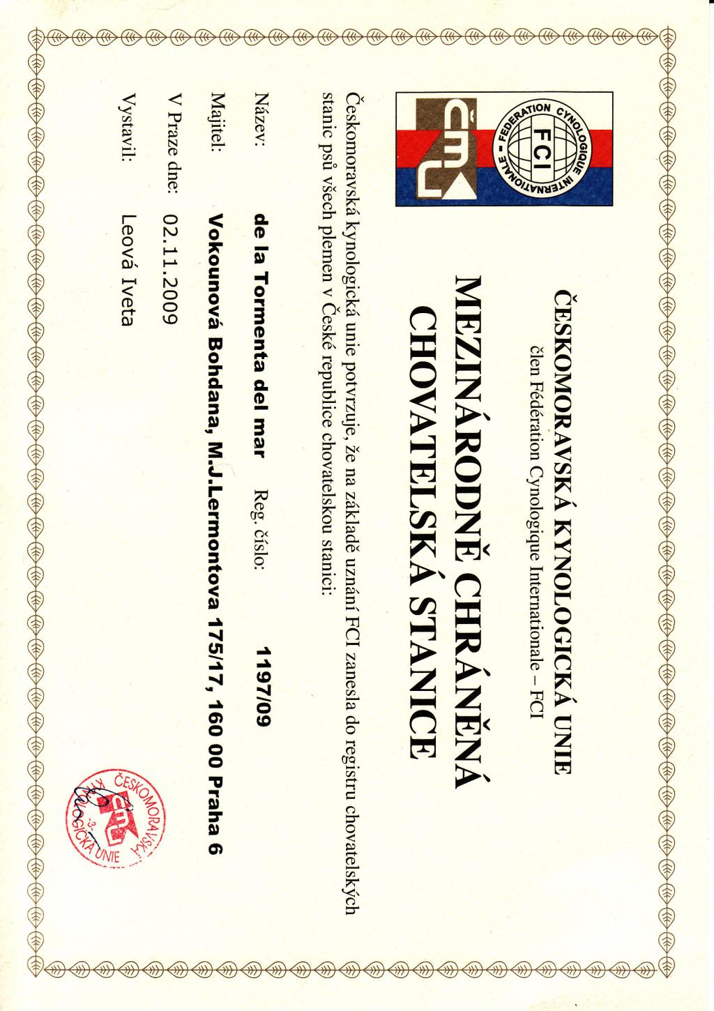 Chovatelská stanice: DE LA TORMENTA DEL MAR