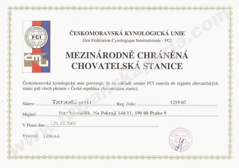 Adresa: Sojovice216, 294 75 Sojovice Telefon: +420603211029, +420603410876 Zodpovědná osoba: Petr Navrátilík www: www.tatranskaperla.com Mail: | Reg. číslo CHS: 1219/07 Certifikát CHS: Zobrazit Certifikát ::: Plánujeme vrh: 15.05.2011 Hodnocení: 92 bodů ze 100 |